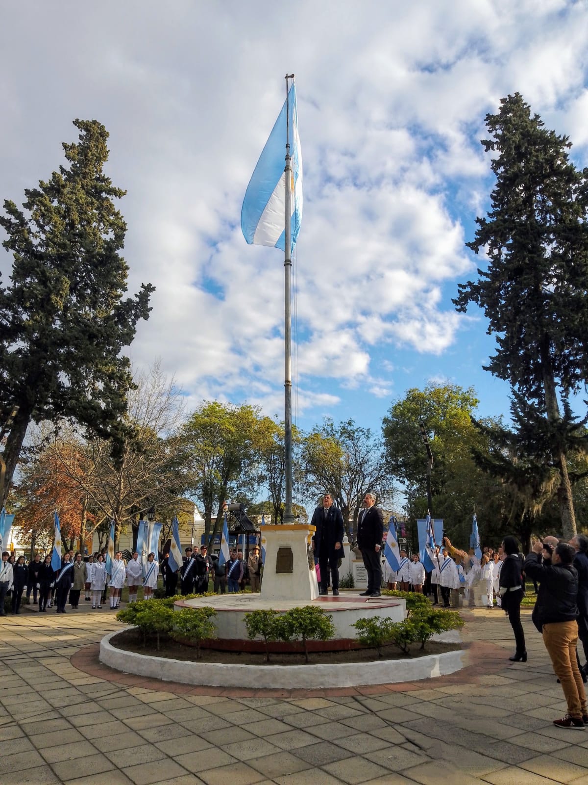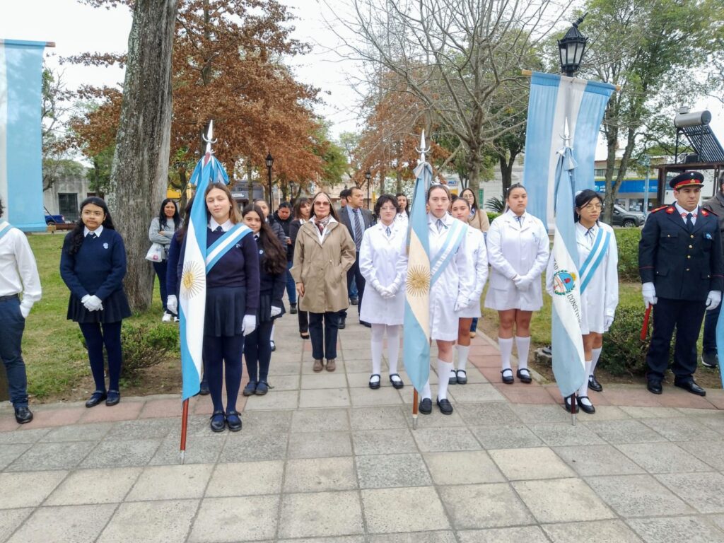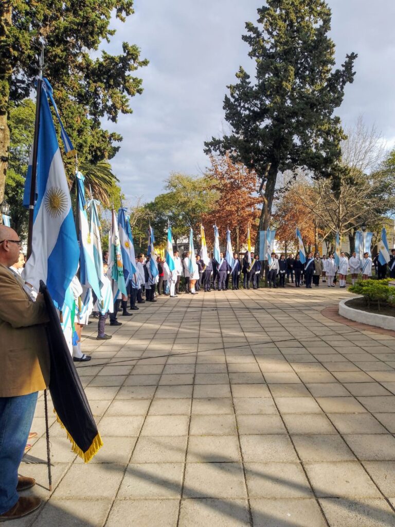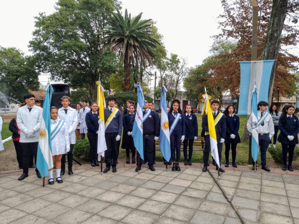 Hoy se llevó a cabo el acto central en conmemoración del Día de la Bandera en la emblemática Plaza 9 de Julio, contando con la presencia de destacadas autoridades locales y una nutrida concurrencia de vecinos.