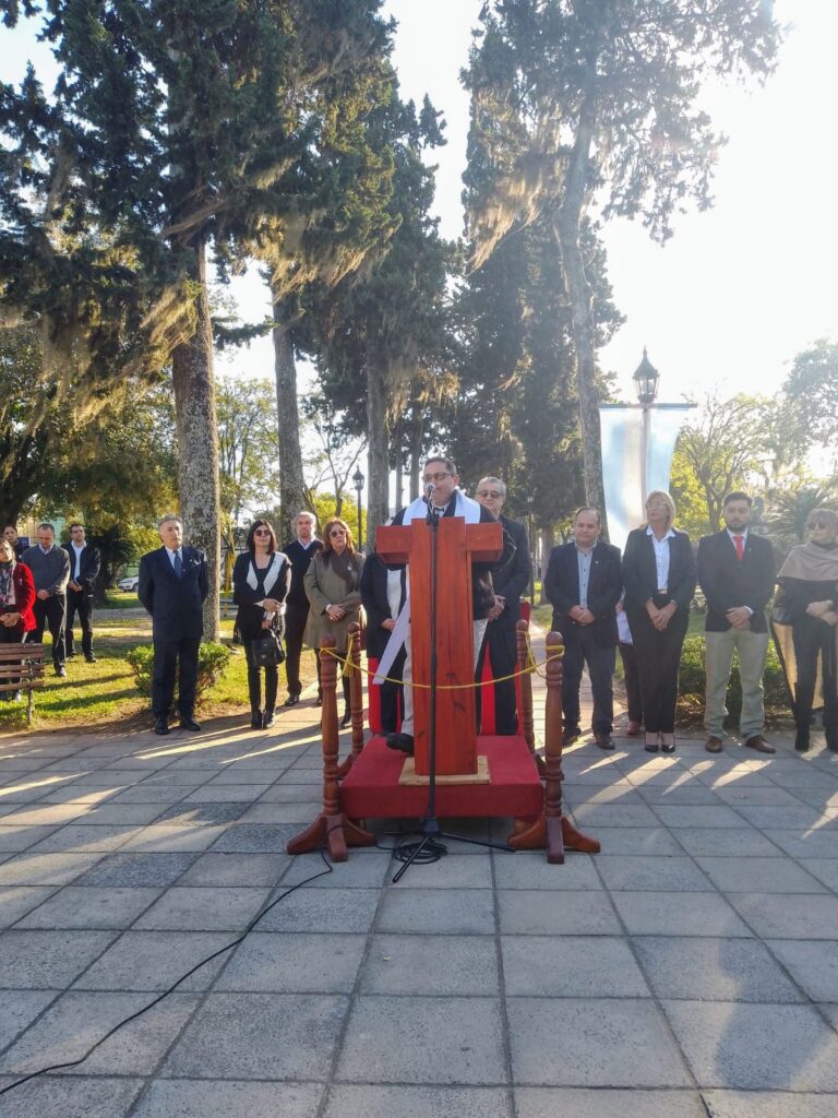 El evento fue presidido por el intendente municipal Hugo Daniel Benítez, quien estuvo acompañado por varios funcionarios de su administración. Durante el acto, se destacó la importancia de la bandera como símbolo de unidad y orgullo nacional.Uno de los momentos más emotivos de la jornada fue el discurso del Padre José Eduardo Ortiz, quien resaltó los valores patrios y el legado de Manuel Belgrano, creador de la bandera argentina, haciendo un llamado a la reflexión y a la unidad en tiempos de desafíos.
