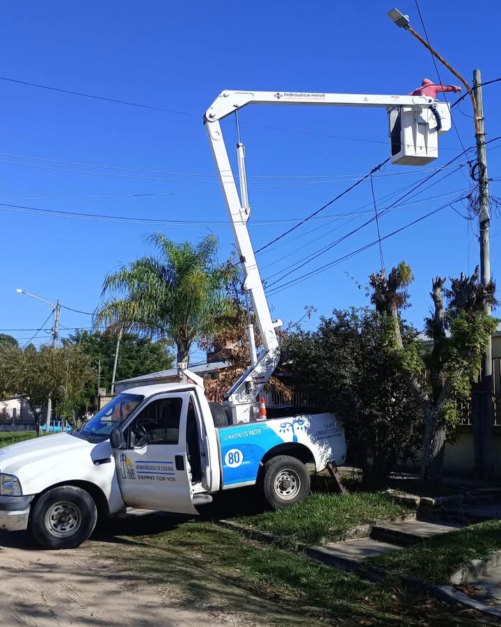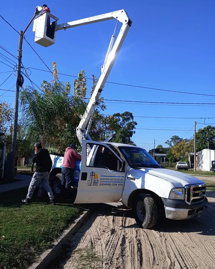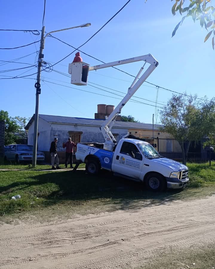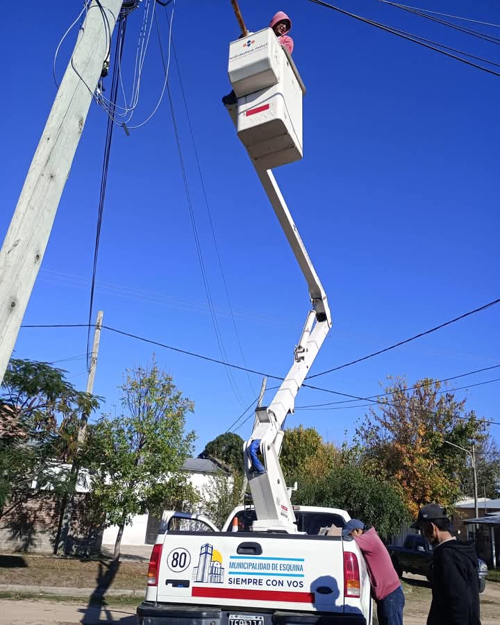 Este martes se reanudaron las labores de reposición de luminarias en los diferentes barrios de la ciudad de Esquina, tras un receso provocado por un incidente con un ataque de abejas que afectó a la cuadrilla de trabajadores.