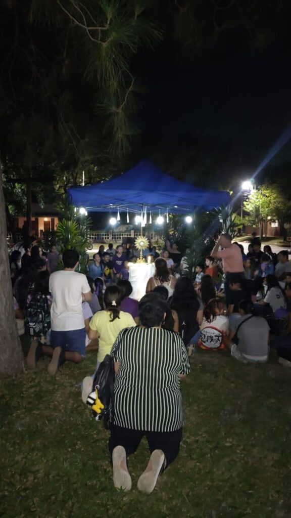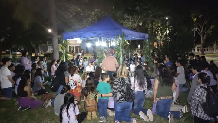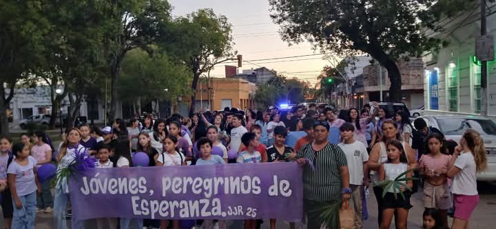 Este sábado por la tarde-noche, la comunidad del Departamento de Esquina vivió un momento muy especial con la celebración de la Jornada Juvenil de Ramos, bajo el lema “Jóvenes Peregrinos de Esperanza”. La plaza 25 de Mayo se llenó de jóvenes, provenientes de diversas comunidades, quienes se unieron en un fervoroso encuentro espiritual.