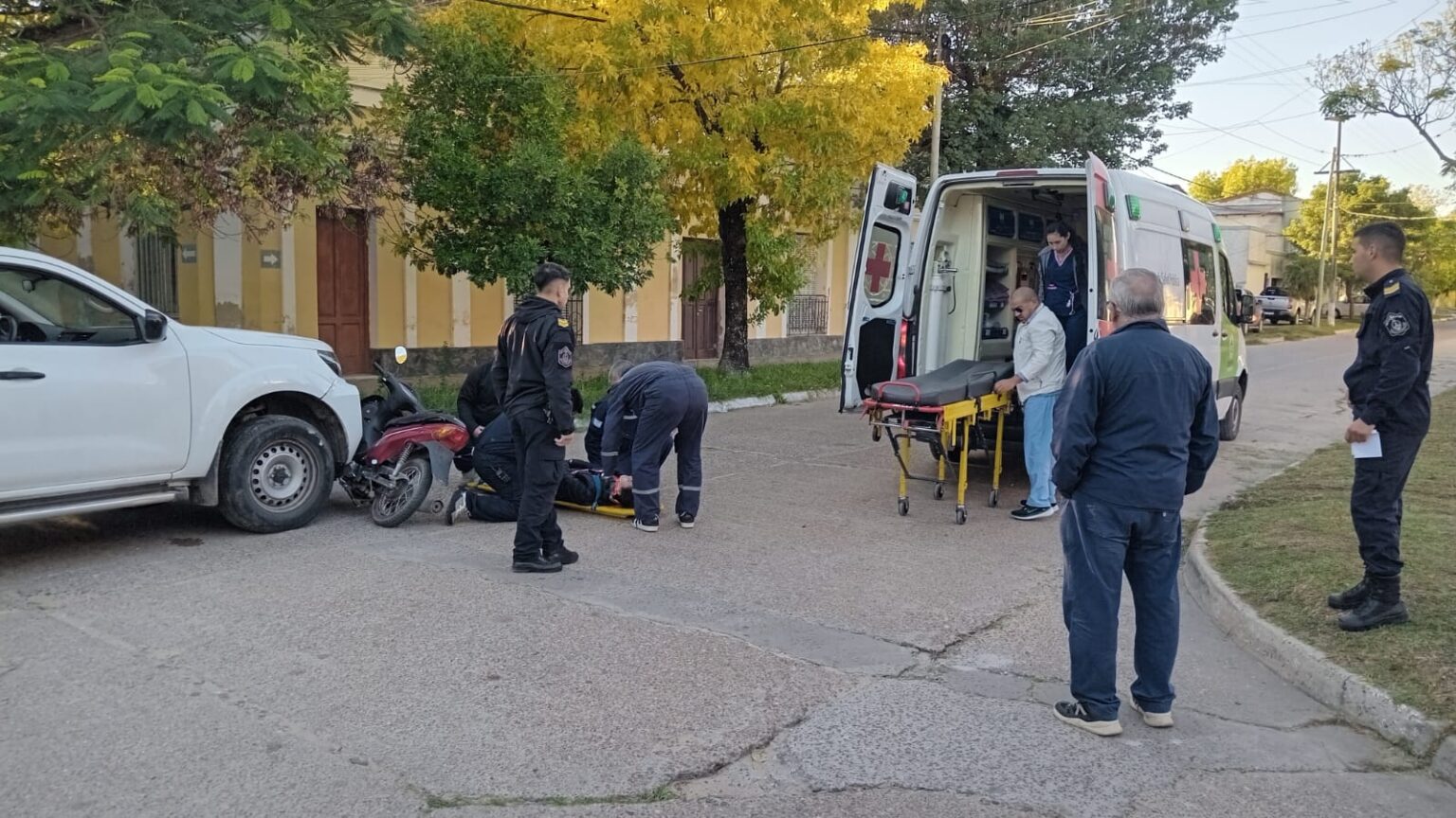 ​Tras el impacto, la joven motociclista fue asistida y trasladada por la ambulancia del Hospital San Roque para realizarle los controles correspondientes y evaluar sus lesiones.
