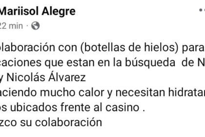 Piden colaboración con botellas de hielo para las embarcaciones que buscan a Nahuel Alegre y Nicolás Álvarez